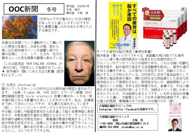 プレオルソ開発者「矯正専門医」大塚 淳の一診入魂 ホームブログOOC新聞OOC新聞 冬号 OOC新聞 冬号 2026.1.26 OOC新聞 OOC新聞 冬号 今まで 温かったんですが 急に寒くなり OOC新聞冬号 発刊しました 今回は 紫外線がからだに与える 影響と 疲労回復の決め手は何か エビデンスのあるお話しを掲載いたしました 前の記事コーラを飲むと下痢が治る 新着情報 OOC新聞 冬号 2026.1.26 コーラを飲むと下痢が治る 2026.1.25 矯正歯科勤務医の募集始めます 2026.1.24 \最新版/Zoom Webライブ!全5回ベーシック・コース2026 2026.1.24 ①プレオルソ ポータルサイト 2026.1.23 記事一覧 カテゴリー DMMonnrainnsaronn (1) OOC新聞 (11) いびき 睡眠時無呼吸 (3) お奨めの本 (603) お奨めのDVD (6) そこが聞きたい!「矯正治療」1 (15) その他 (299) なんでも相談 (22) よくある矯正治療中のご質問 (27) ブログ (73) プレオルソ イニシャル (7) プレオルソ インターナショナル (13) プレオルソ サロンのご紹介 (103) プレオルソ セミナーお知らせ (219) プレオルソ タイプⅢ ロング (5) プレオルソ ポータルサイト (17) プレオルソ ユーティリティ (18) プレオルソ 取り扱いクリニック (1) プレオルソ実習 (2) ラジオ深夜便 (3) 一品入魂 (13) 一耳入魂 (1) 一読入魂 (38) 一食入魂 (463) 名言 (409) 困った患者さん (3) 大塚淳の詳しいプロフィール (1) 大塚矯正歯科クリニックのご案内 (2) 大塚矯正歯科クリニックのご案内 (1) 季節 (1) 対談セミナー (8) 小ネタ (61) 患者さんの感想 (119) 時事問題 (1) 未分類 (137) 機能的マウスピース矯正研究会 (3) 次世代の矯正治療 (3) 矯正ライフハック (8) 矯正ライフハック (8) 矯正歯科医の趣味 (97) 矯正歯科医募集 (2) 矯正歯科診療室より (2) 矯正治療の感想 (142) 矯正治療ライフハック (7) 臨床のヒント (28) 見えない矯正治療 (3) 診療室から (814) 赤ちゃん育児ライフハック (1) アーカイブ アーカイブ 月を選択 2026年1月 2025年12月 2025年11月 2025年10月 2025年9月 2025年8月 2025年7月 2025年6月 2025年5月 2025年4月 2025年3月 2025年2月 2025年1月 2024年12月 2024年11月 2024年10月 2024年9月 2024年8月 2024年7月 2024年6月 2024年5月 2024年4月 2024年3月 2024年2月 2024年1月 2023年12月 2023年11月 2023年10月 2023年9月 2023年8月 2023年7月 2023年6月 2023年5月 2023年4月 2023年3月 2023年2月 2023年1月 2022年12月 2022年11月 2022年10月 2022年9月 2022年8月 2022年7月 2022年6月 2022年5月 2022年4月 2022年3月 2022年2月 2022年1月 2021年12月 2021年11月 2021年10月 2021年9月 2021年8月 2021年7月 2021年3月 2021年2月 2021年1月 2020年12月 2020年11月 2020年10月 2020年9月 2020年8月 2020年7月 2020年6月 2020年5月 2020年4月 2020年3月 2020年2月 2020年1月 2019年12月 2019年11月 2019年10月 2019年9月 2019年8月 2019年7月 2019年6月 2019年5月 2019年4月 2019年3月 2019年2月 2019年1月 2018年12月 2018年11月 2018年10月 2018年9月 2018年8月 2018年7月 2018年6月 2018年5月 2018年4月 2018年3月 2018年2月 2018年1月 2017年12月 2017年11月 2017年10月 2017年9月 2017年8月 2017年7月 2017年6月 2017年5月 2017年4月 2017年3月 2017年2月 2017年1月 2016年12月 2016年11月 2016年10月 2016年9月 2016年8月 2016年7月 2016年6月 2016年5月 2016年4月 2016年3月 2016年2月 2016年1月 2015年12月 2015年11月 2015年10月 2015年9月 2015年8月 2015年7月 2015年6月 2015年5月 2015年4月 2015年3月 2015年2月 2015年1月 2014年12月 2014年11月 2014年10月 2014年9月 2014年8月 2014年7月 2014年6月 2014年5月 2014年4月 2014年3月 2014年2月 2014年1月 2013年12月 2013年11月 2013年10月 2013年9月 2013年8月 2013年7月 2013年6月 2013年5月 2013年4月 2013年3月 2013年2月 2013年1月 2012年12月 2012年11月 2012年10月 2012年9月 2012年8月 2012年7月 2012年6月 2012年5月 2012年4月 2012年3月 2012年2月 2012年1月 2011年12月 2011年11月 2011年10月 2011年9月 2011年8月 2011年7月 2011年6月 2011年5月 2011年4月 2011年3月 2011年2月 2011年1月 2010年12月 2010年11月 2010年10月 2010年9月 2010年8月 2010年7月 2010年6月 2010年5月 2010年4月 2010年3月 2010年2月 2010年1月 2009年12月 2009年11月 2009年10月 2009年9月 2009年8月 2009年7月 2009年6月 2009年5月 2009年4月 2009年3月 2009年2月 2009年1月 2008年12月 2008年11月 2008年10月 2008年9月 2008年8月 2008年7月 2008年6月 2008年5月 2008年4月 2008年3月 2008年2月 2008年1月 2007年12月 2007年11月 2007年10月 2007年9月 2007年8月 2007年7月 2007年6月 2007年5月 2007年4月 2007年3月 2007年2月 2007年1月 2006年11月 2006年10月 2006年9月 2006年8月 2006年7月 2006年6月 2006年5月 2006年4月 2006年3月 2006年2月 2006年1月 2005年12月 2005年11月 2005年10月 2005年9月 2005年8月 2005年7月 2005年6月 2005年5月 2005年4月